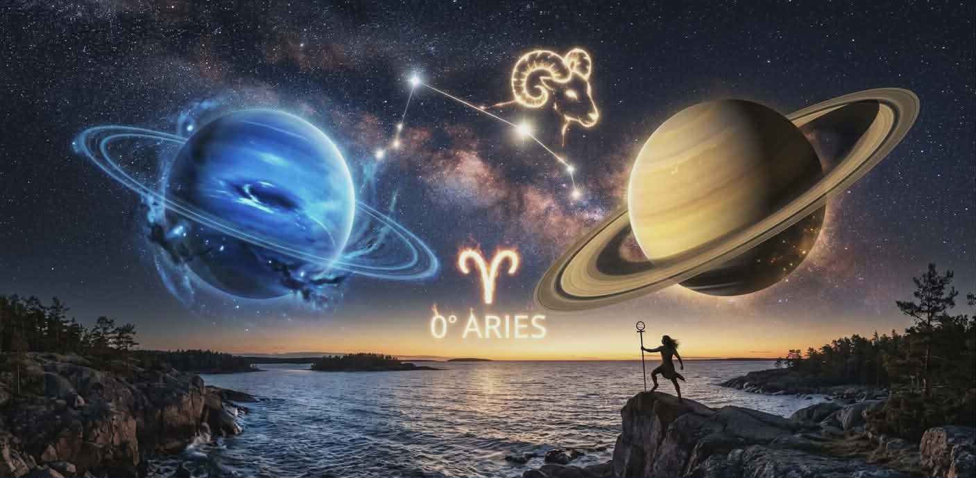 När Saturnus och Neptunus möts vid 0° i Väduren, står vi inför ett val: Ska vi fortsätta leva på lånad tid, eller ska vi börja skapa från sanning?